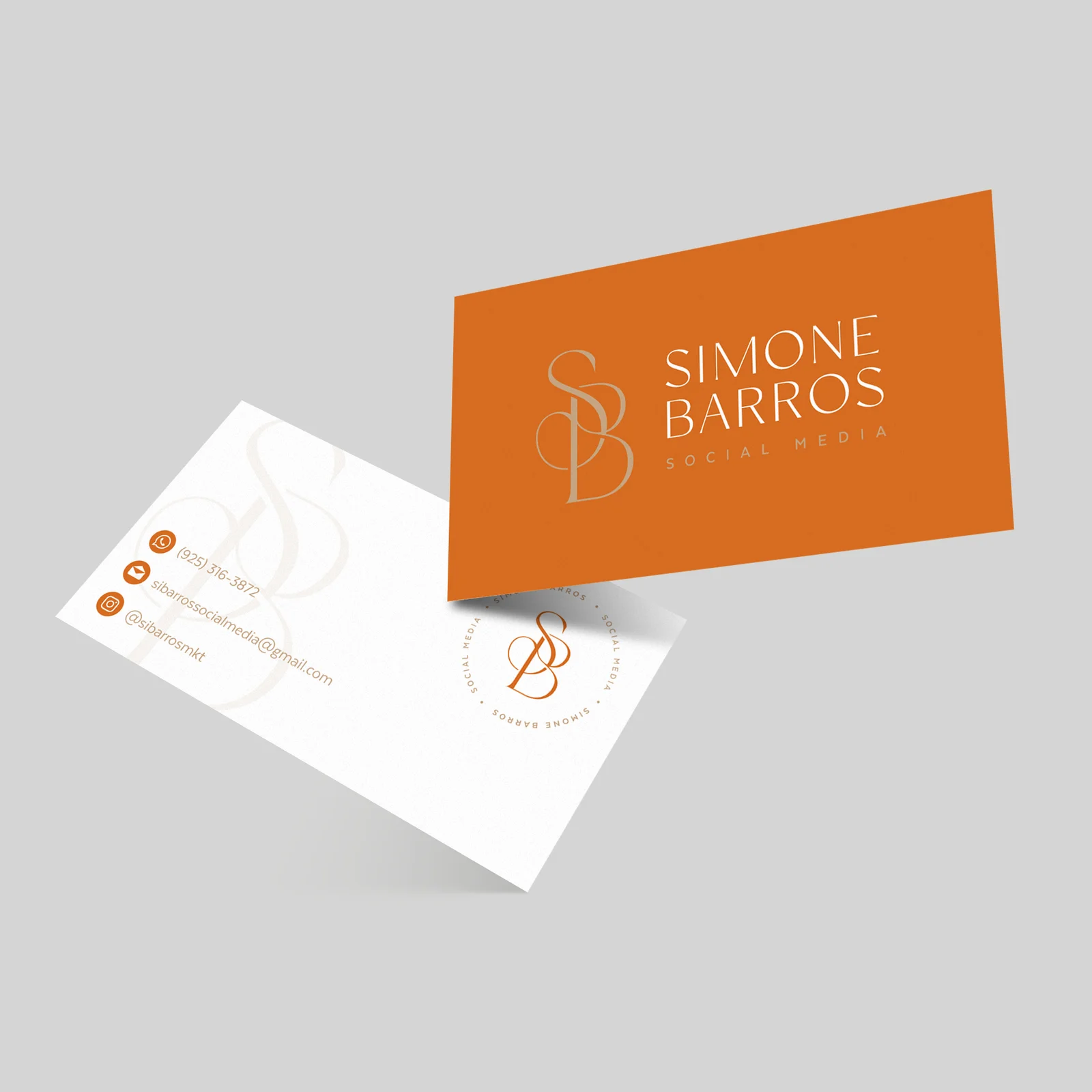 Com linhas finas, curvas contínuas e proporções equilibradas, o monograma representa o equilíbrio entre criatividade, estratégia e posicionamento de marca. Ele une movimento, personalidade e presença marcante.Tipografia do nome “Simone Barros”: